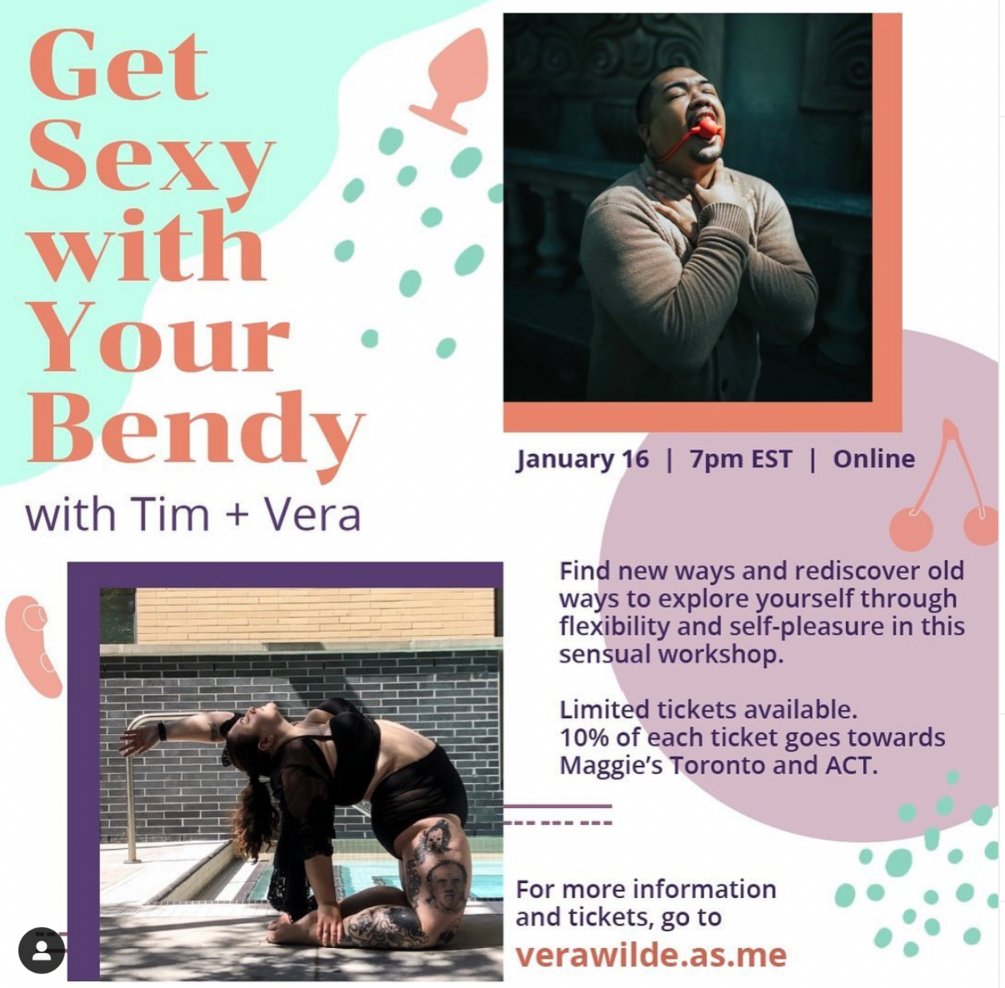 Ouu baby! Get flexy with your sexy enjoy this two hourworkshop led by flexibility trainer Vera and sex educator Tim. Get those legs wide open and that back bent over and enjoy this collaborative stretch and self pleasure workshop on how to feel your most orgasmic self.